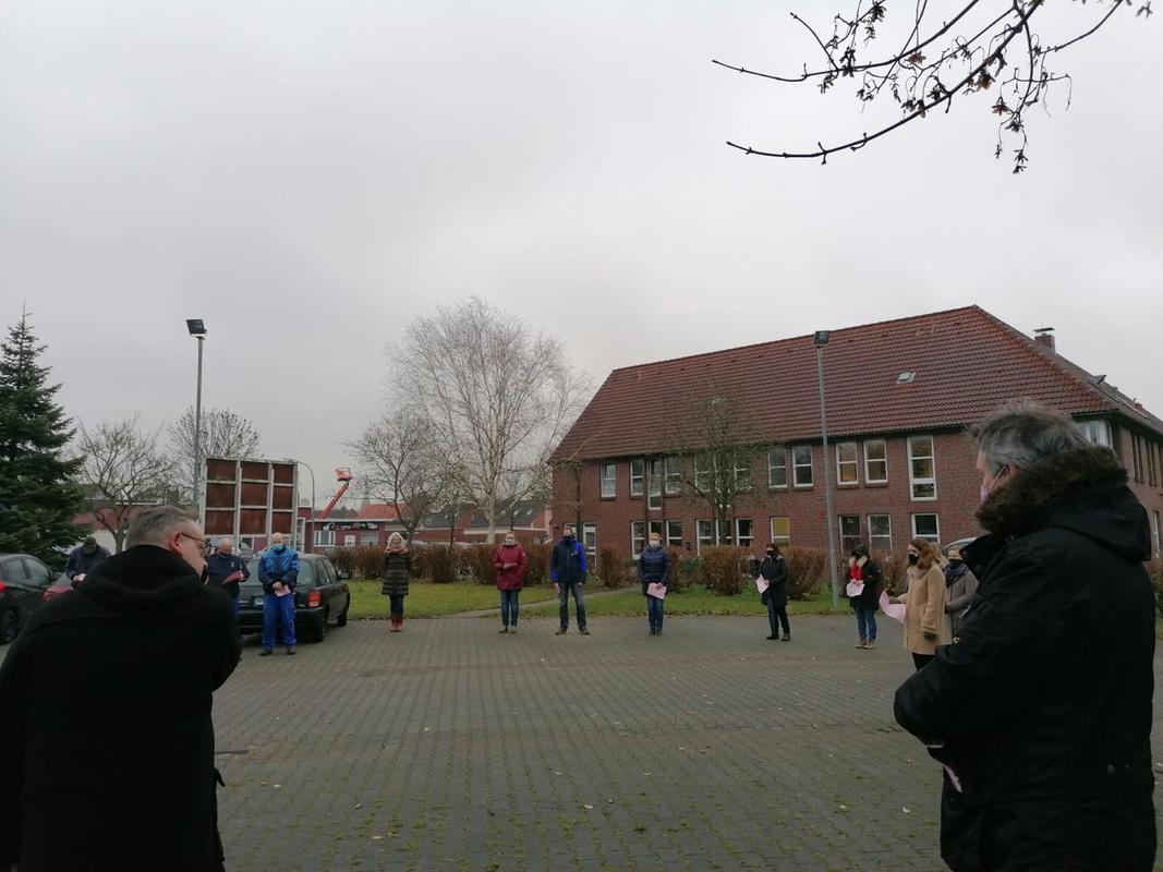 Die Diakonie Friesland-Wilhelmshaven feierte erstmals seit dem Ausbruch der Corona-Pandemie wieder eine Mitarbeitenden-Andacht. Für alle ungewohnt wurde der Parkplatz am Haus der Diakonie zum Gottesdienstort.